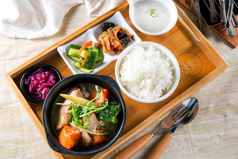 今天選擇的套餐是啤酒燉豬肉,據說酵母除了讓肉質更細緻柔軟,豬肉的腥味也會被燉煮到煙消雲散,費工一小時以上,應該沒有比點這道菜更能看出廚師的功力,採訪的時候,店長最推炸旗魚這道菜,一般餐廳大多是用多利魚,但旗魚口感更札實更有彈性,加上主廚特製的麵糊實在特別好吃,如果第一次來不知道要點什麼的朋友,點這道就對了!