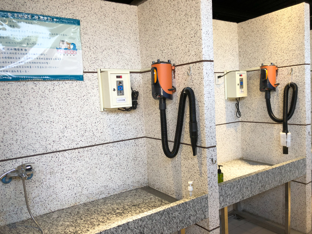 游累了上岸還有大草皮可以休息上廁所~想洗澡也為家長準備職業級的洗澡台和吹水機,餓了隨時可以跟廚房點寵物餐~啊啊啊~當毛孩真好~